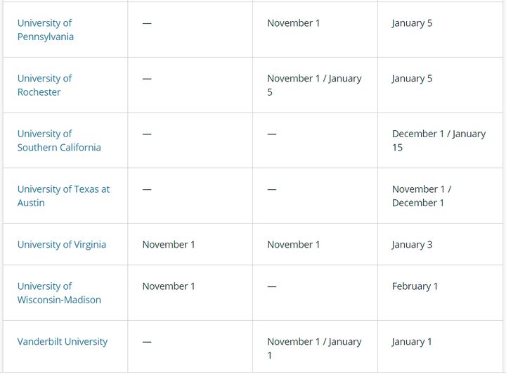 随着2022秋季申请的开始,大部分的美国院校已经发布了他们的申请截止日期和录取日期,同学们在了解高校招生政策变化的同时,是否也应该对今年各顶尖学府申请截止日期多一些了解呢?话不多说,快来收藏下面这张表单,向你的梦校发起冲刺!