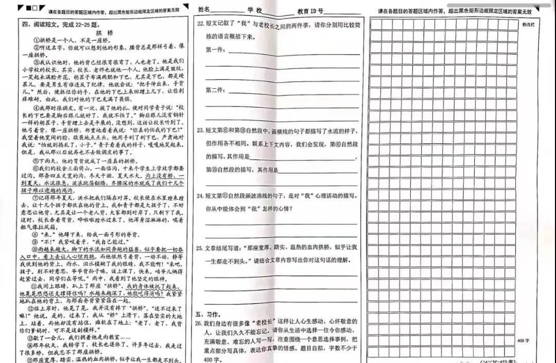 作为“双减”后的第一次期末考试,打开试卷的那一刻,孩子和家长都傻了……大家都来感受一下,这是六年级的语文试卷: