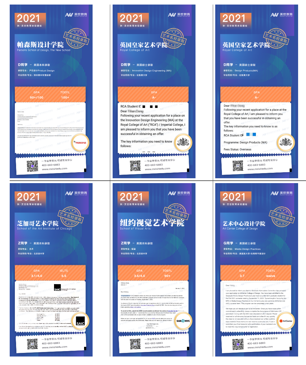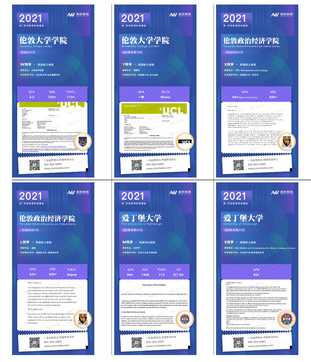 2021其他国家本硕博&艺术院校本硕录取战况也收获颇丰。接下来,再来看看我们世界名校的offer图鉴,感受同学们收获名校“脆录”那一刻的喜悦!